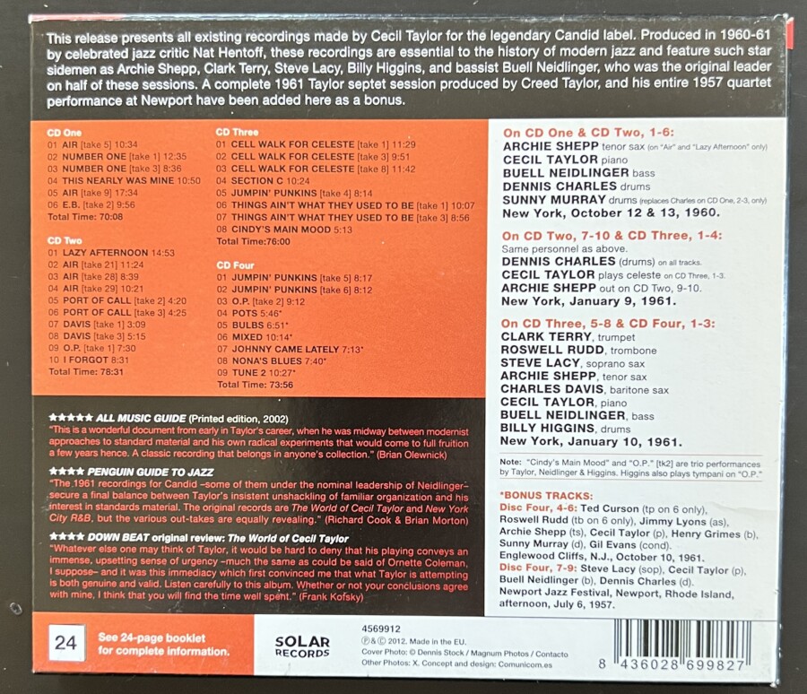 All existing recordings made by Cecil Taylor for the legendary Candid label!